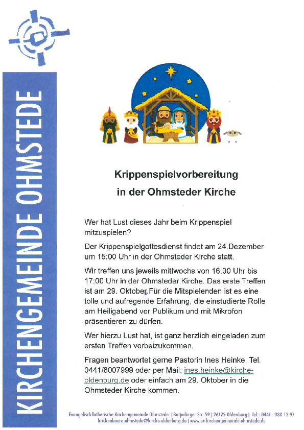 • telefonisch unter 0441 3801297 (Büro) oder 0441 8007999 (Pfarrerin Ines Heinke) oder