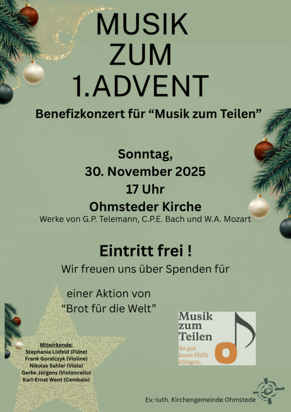Herzliche Einladung am Freitag, den 5. Dezember 2025 um 17 Uhr in die Ohmsteder Kirche.