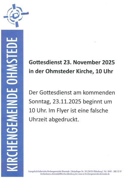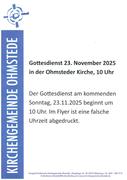 Der Gottesdienst am 23.11.2025 beginnt um 10 Uhr.